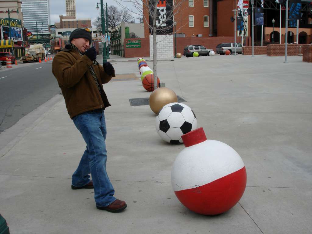 Julia, Hanlon told me that you thought that the gold one was the "snitch" from Harry Potter....maybe its a shot put...don't know though...good idea though!