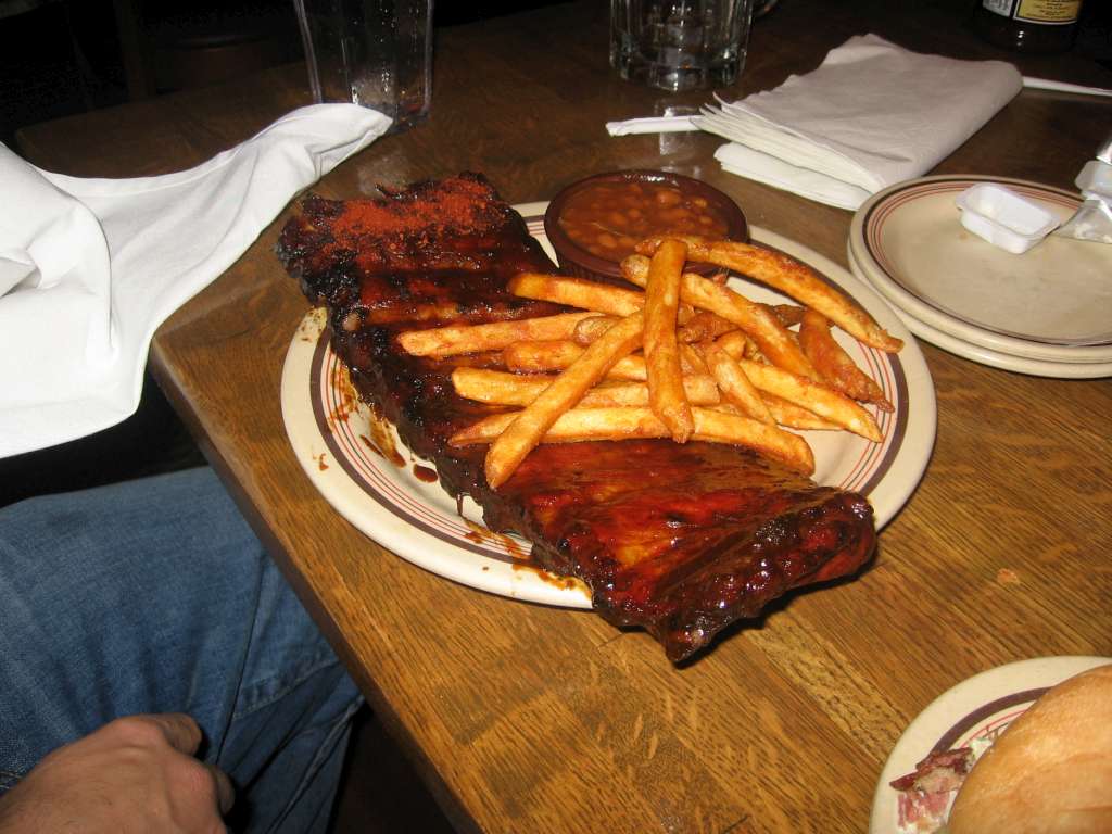 Chris got the Memphis ribs wet except for one dry rib at the end. We thought we'd all have a teeny taste of Corky's specialty. We actually preferred the dry rub rib.