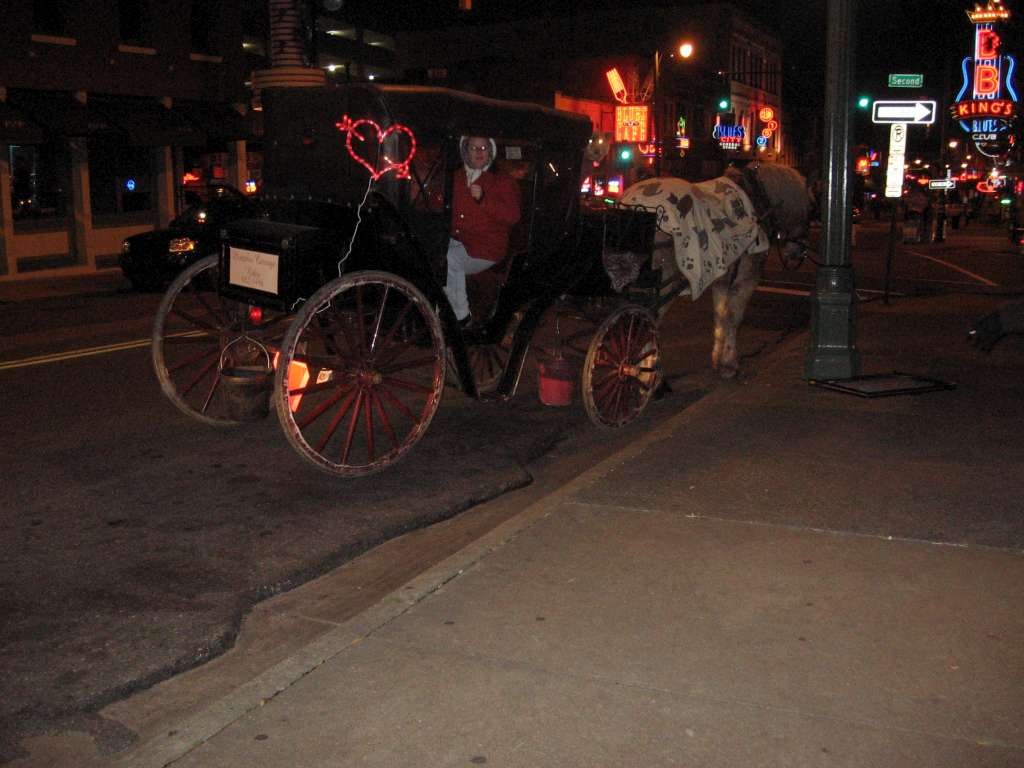 Downtown carriages with their Valentine's Day lights on.