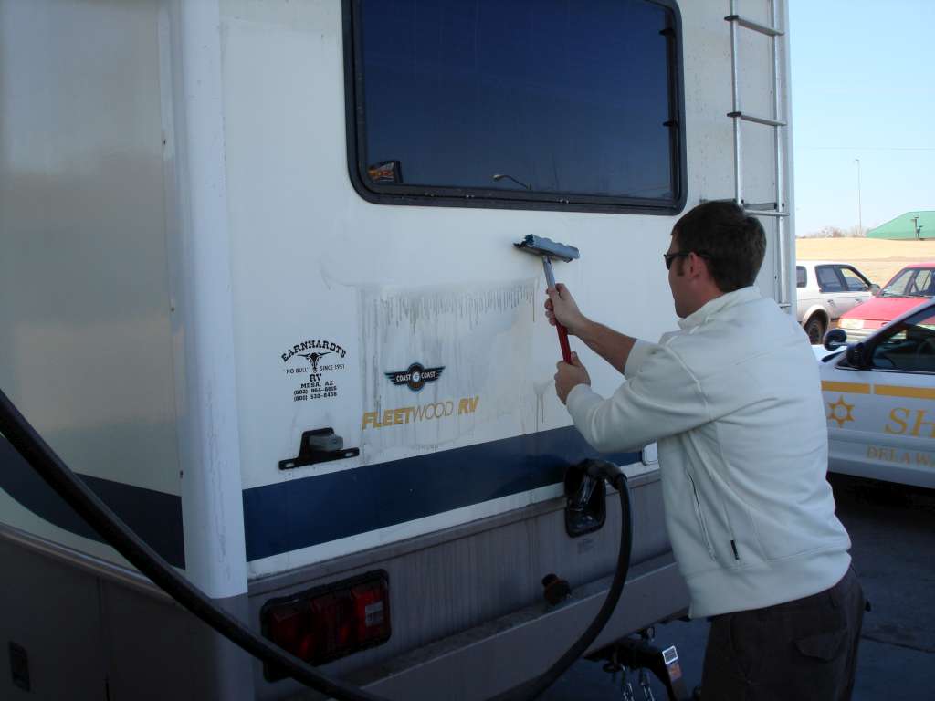Chris trying to do anything he can to make the RV look a little cleaner.