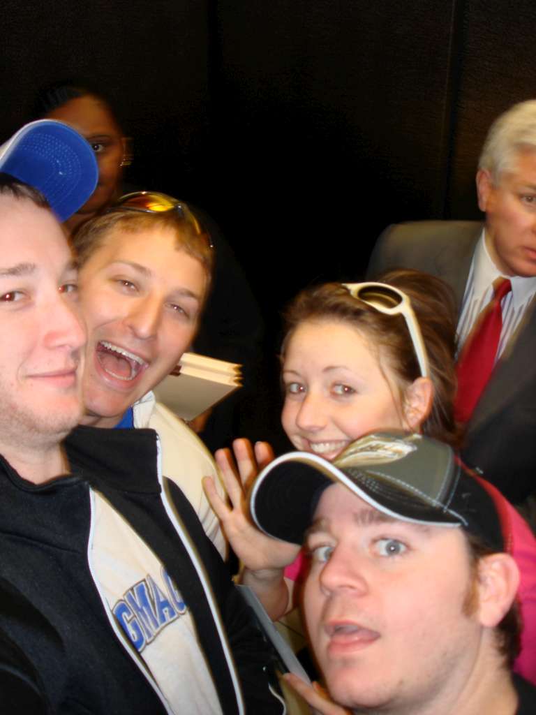 We felt pretty out of place in the elevator without our power suits and bluetooth.