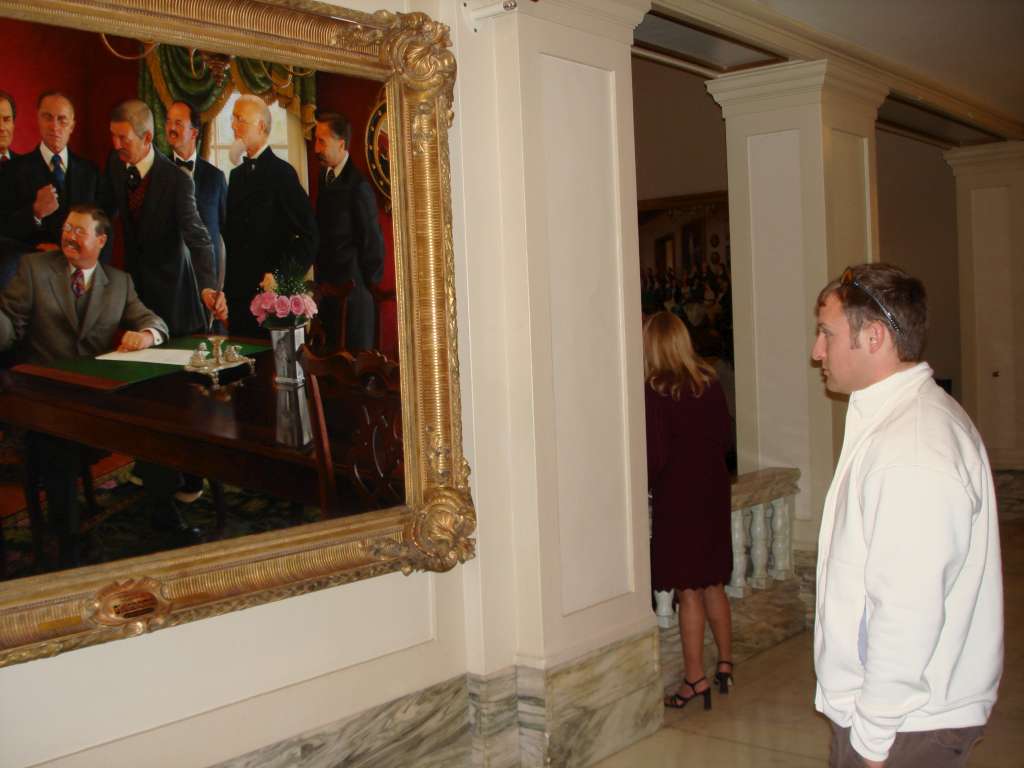 Chris taking in the historical significance of this artwork. Either that or he is just trying to get away from Julia's self-guided tour.