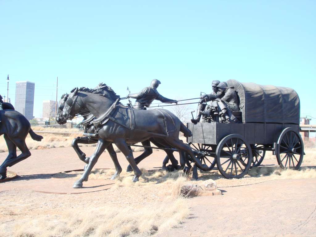 A depiction of the Great Land Run in Oklahoma in the 1800's.
