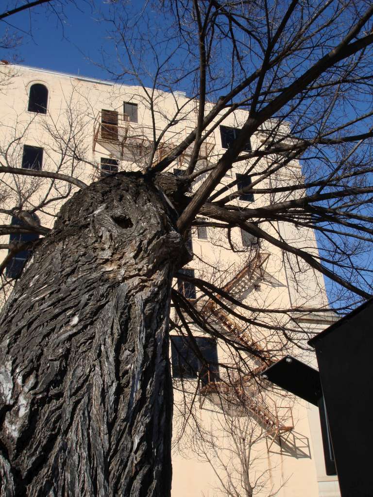 This building was not repaired fully to show the damage it sustained. The bricks in the windows were painted black to convey what is looked like with all the windows blown out.