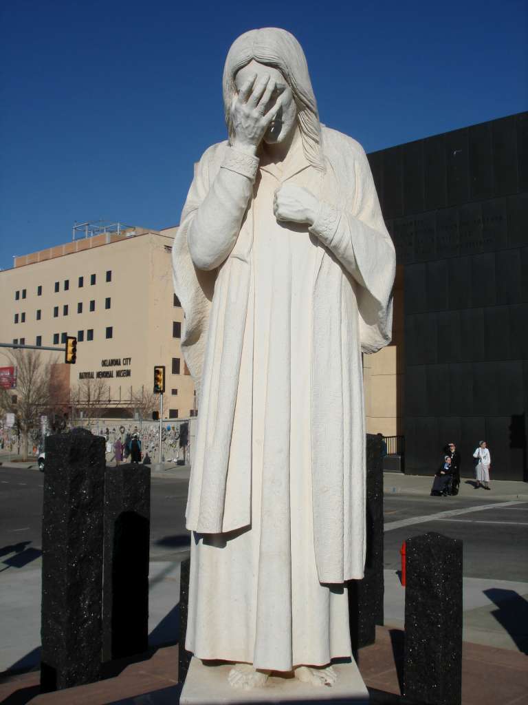 A statue titled "Jesus Wept" outside the memorial.