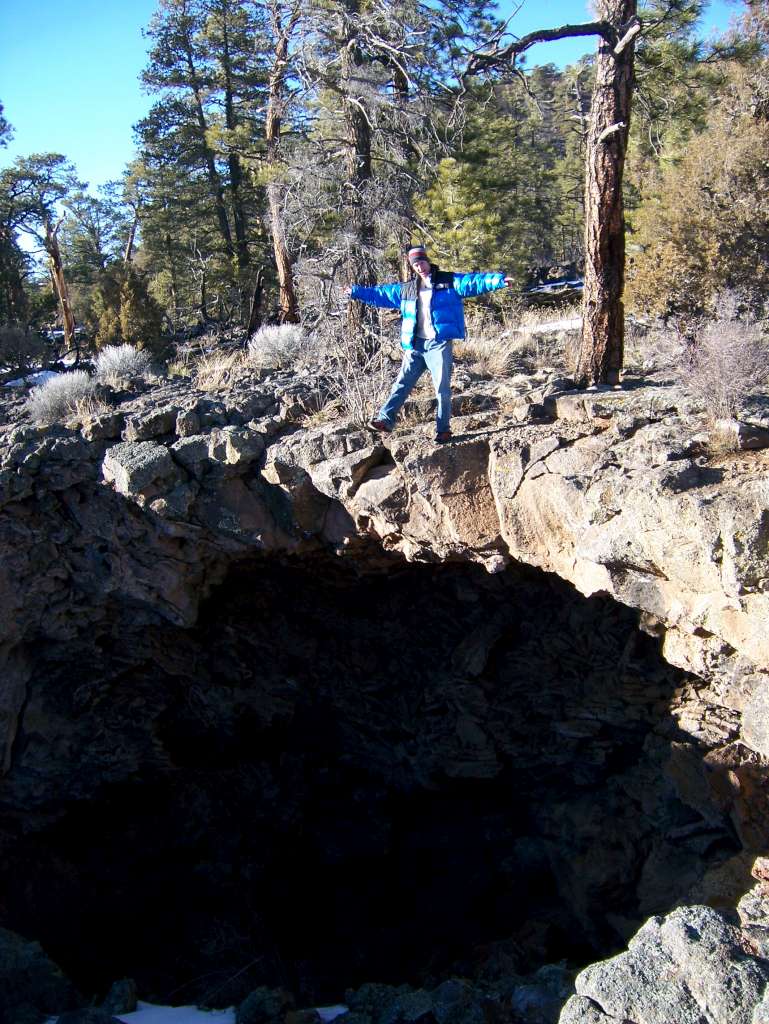 But that didn't stop him from climbing on to an overhanging rock and peering in.