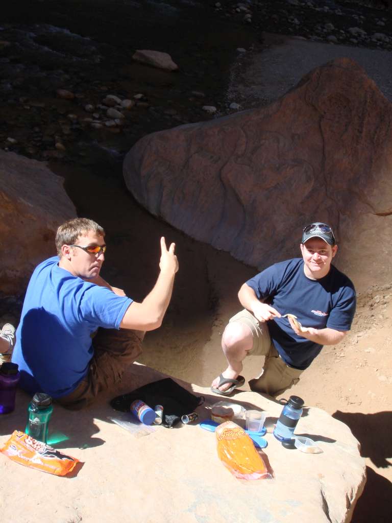 Stopping on a big rock to eat our lunch we packed.