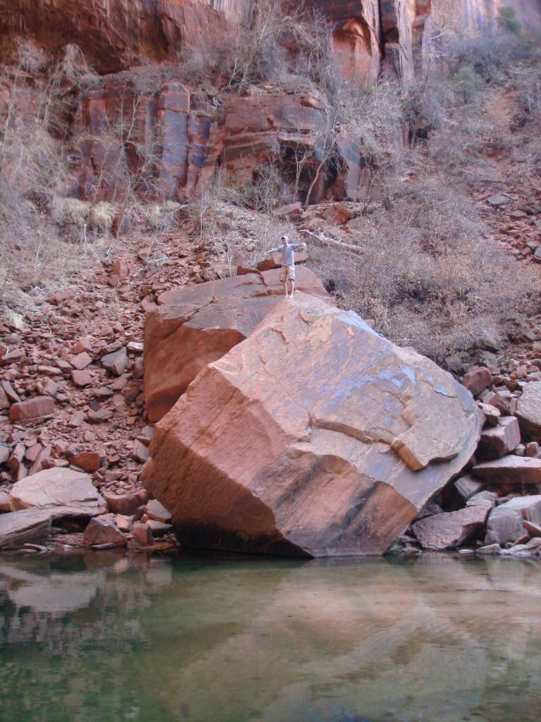 Hanlon scaling the jagged edge. Don't worry, if he falls, he'll just land into the water. Did I mention it was only about 8 inches deep there?
