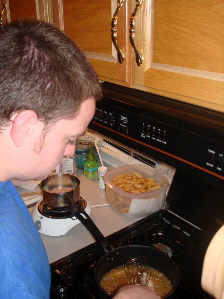 AJ cooking an awesome meal of pineapple teriyaki chicken.